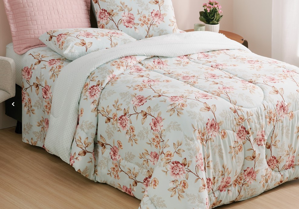 Com cores vibrantes e duradoras, toque de pétala e secagem rápida, esse jogo de cama deixará seu quarto ainda mais aconchegante. Escolha entre a estampa elegante e geométrica Simetria ou a delicadeza e frescor da estampa Floreando.